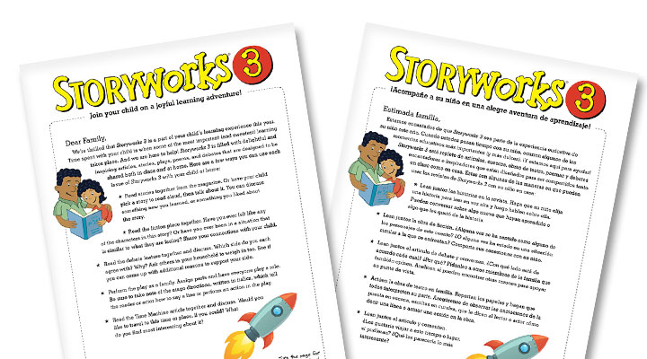 The Family Letter, available in both English and Spanish, shows parents and families how to log onto the Storyworks 3 Website from home, and also gives easy, straightforward tips on how to use the website with their child.